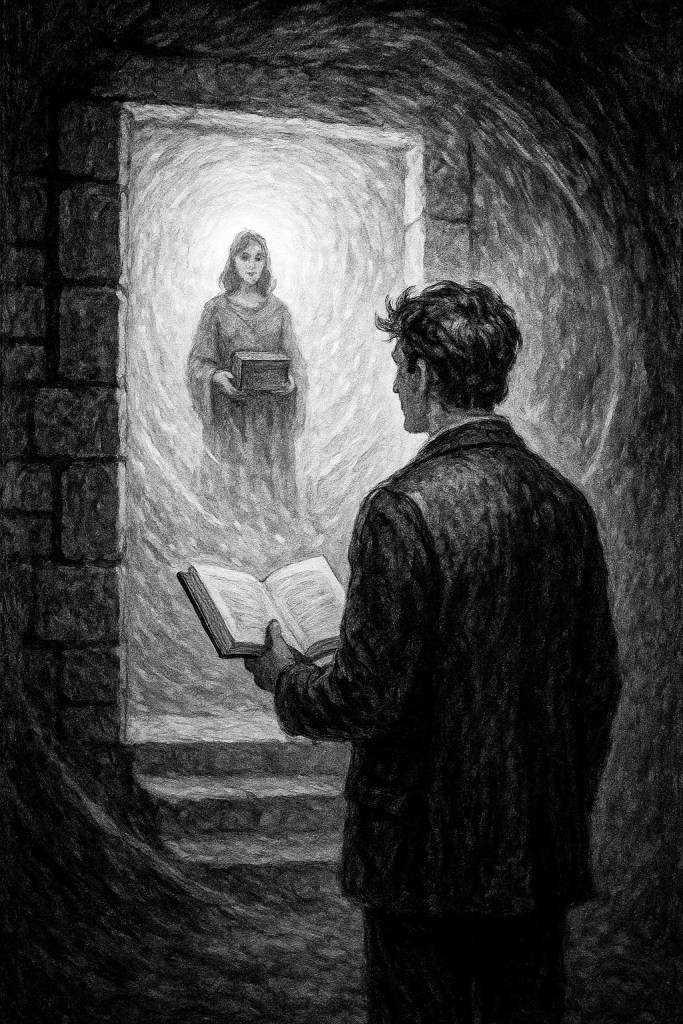 La campanita sonó igual que la primera vez. El aire era más espeso. Las pilas de libros, más altas. El bibliotecario —Teseo— lo esperaba sin sorpresa.